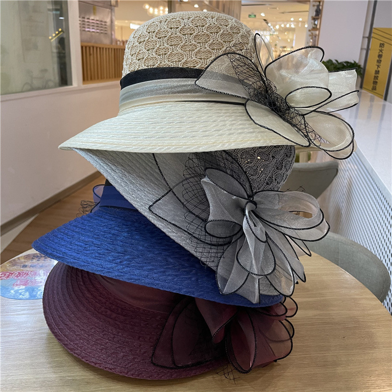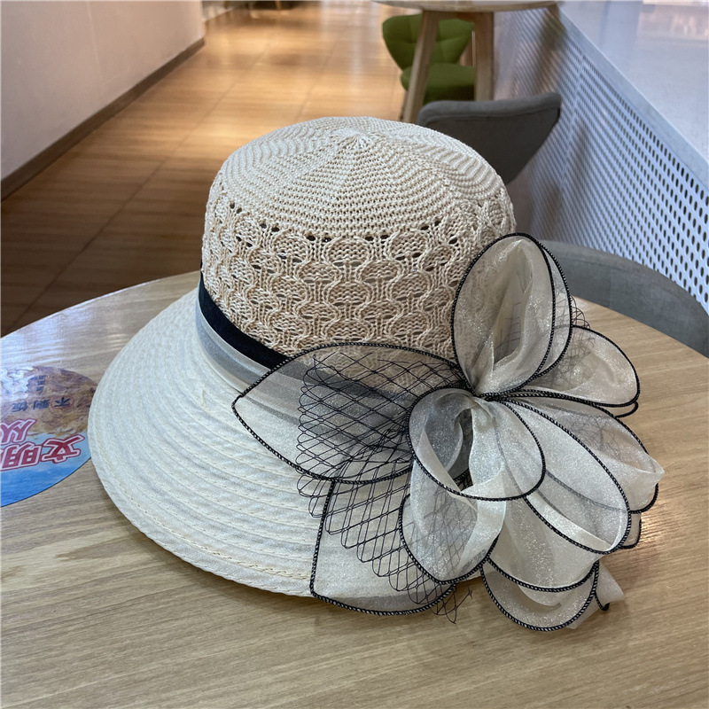 European And American Sun Protection Hat Women’s Organza Solid Color Large Flower Sun Hat British Lady Elegant Graceful