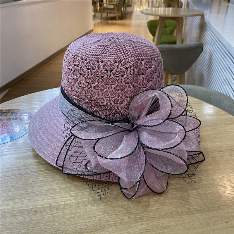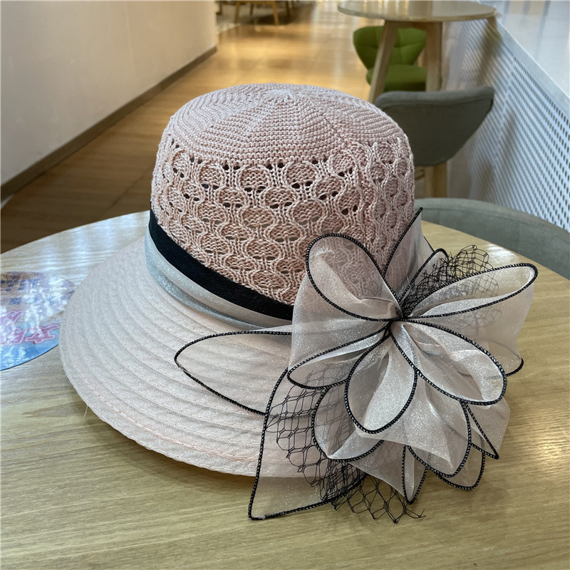 Home HATS Banquet hats Flower Organza Fisherman Hat Female Summer