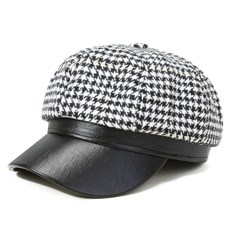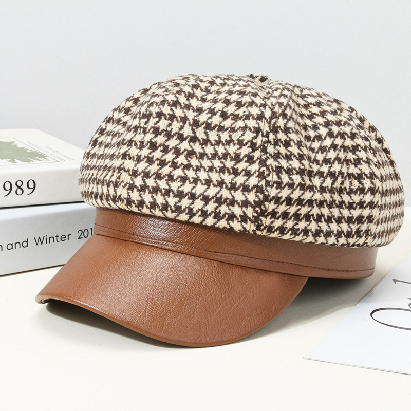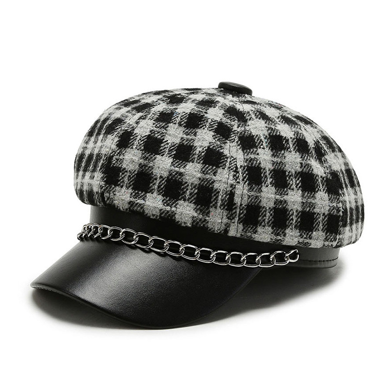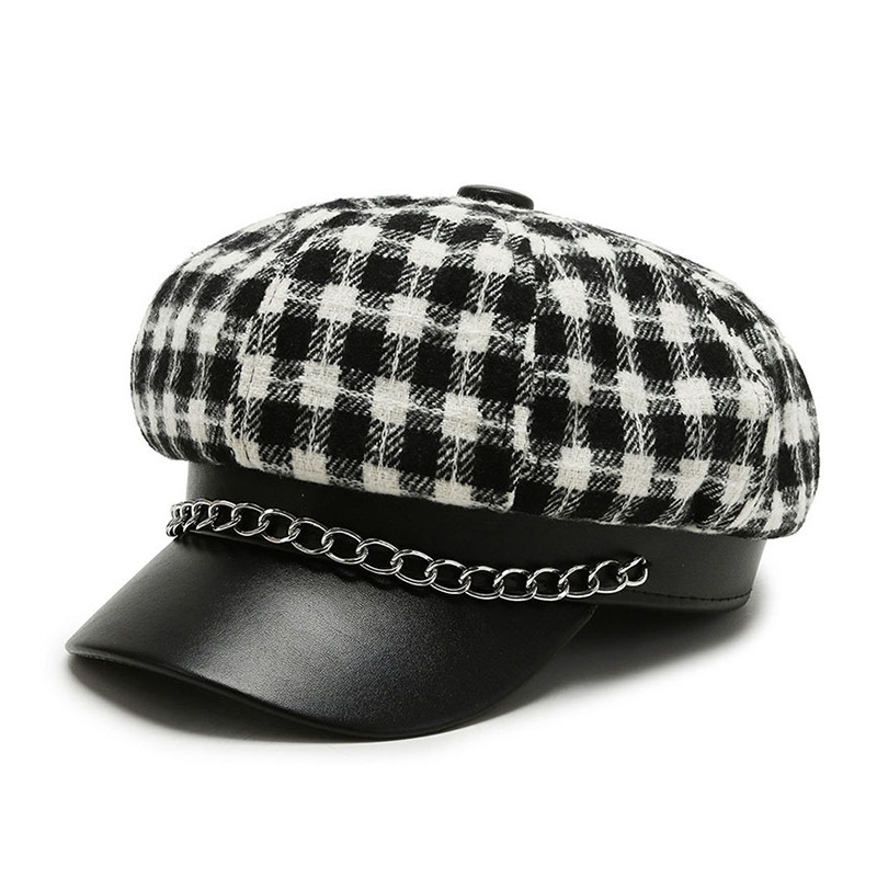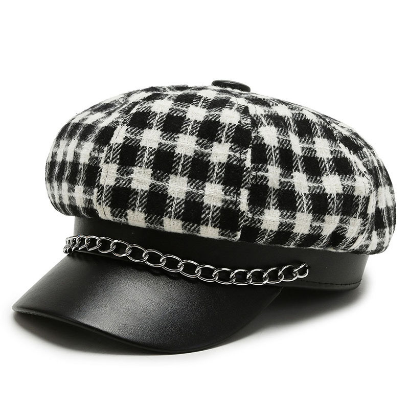 Octagonal Cap Women’s Retro Chain Plaid Woolen Soft Top Beret